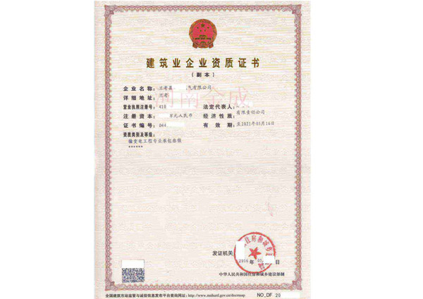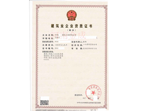 • 建筑業企業資質證書副
